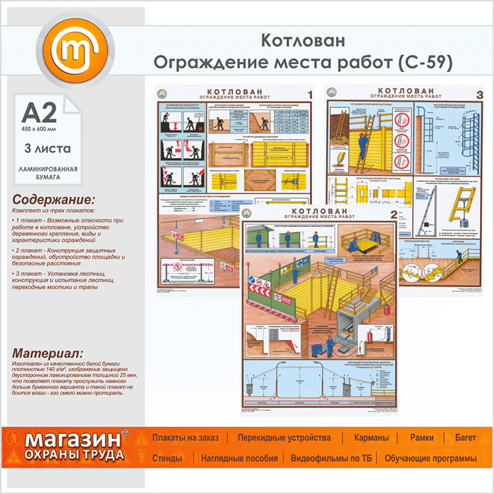 Плакаты «Котлован. Ограждение места работ» (С-59, ламинированная бумага, А2, 3 листа) в Старом Осколе купить