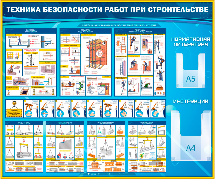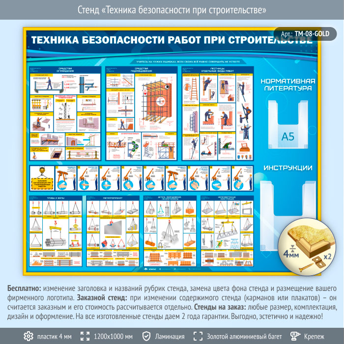Стенд «Техника безопасности при строительстве» с 2 объемными карманами (TM-08-GOLD) в Старом Осколе купить