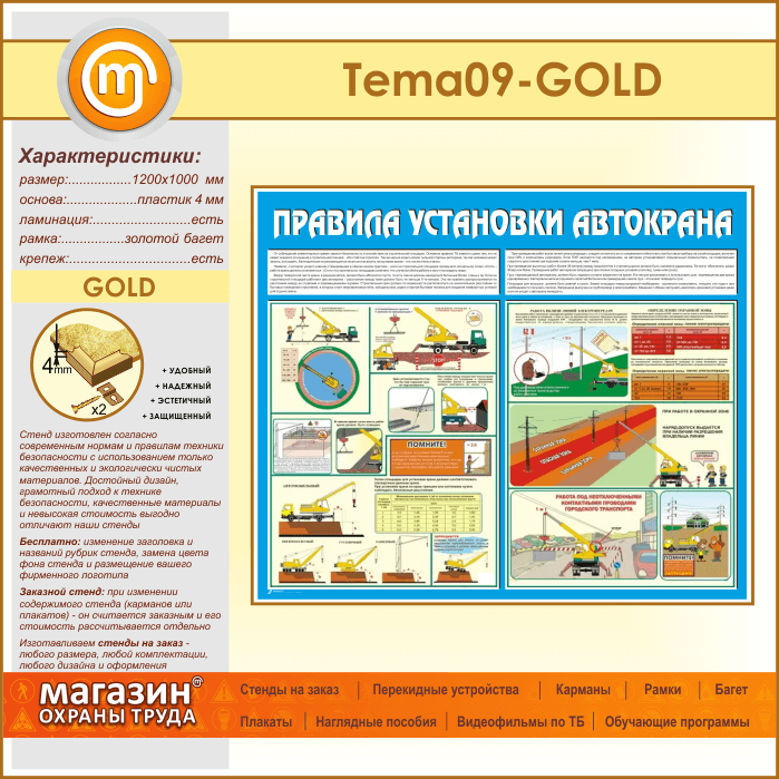 Стенд «Правила установки автокранов» (TM-09-GOLD) в Старом Осколе купить