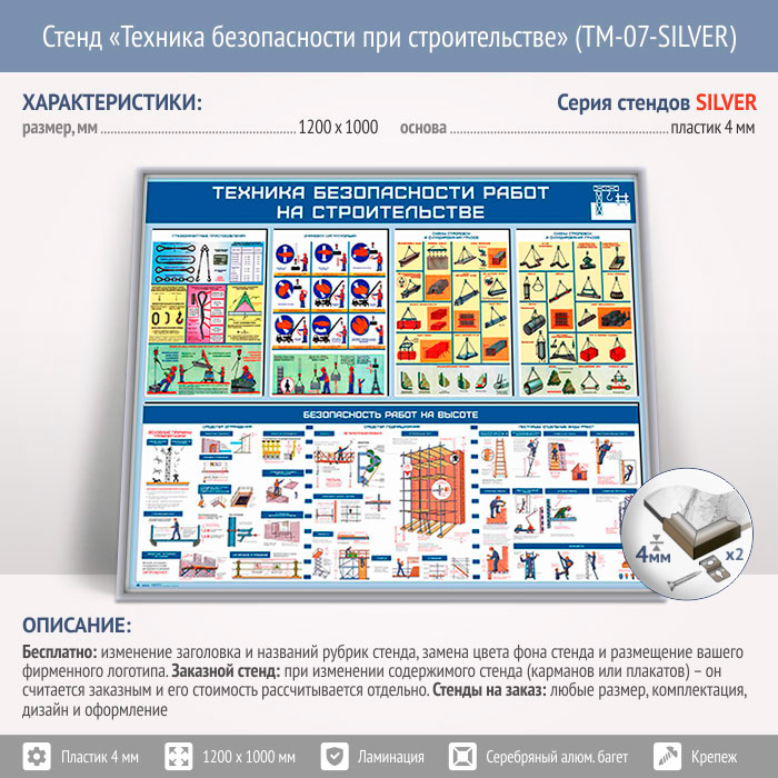 Стенд «Техника безопасности при строительстве» (TM-07-SILVER) в Старом Осколе купить