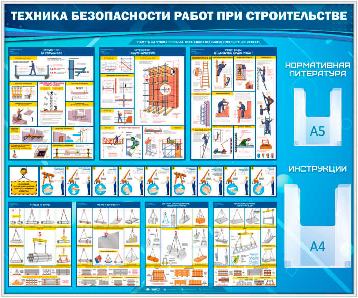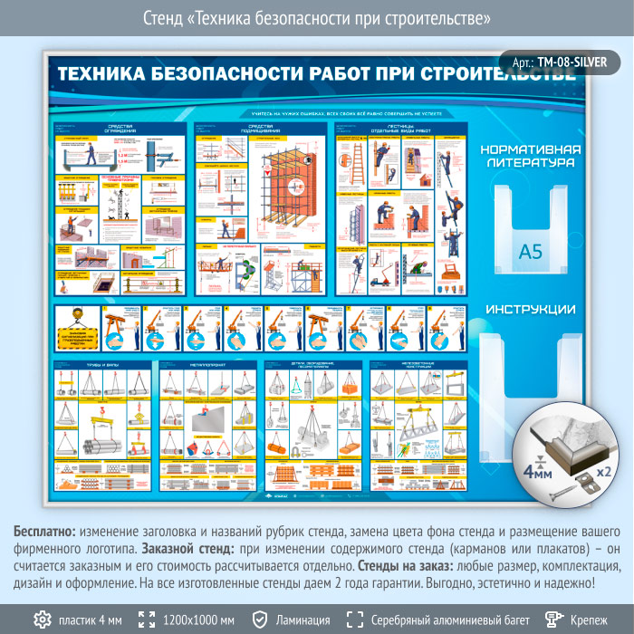 Стенд «Техника безопасности при строительстве» с 2 объемными карманами (TM-08-SILVER) в Старом Осколе купить