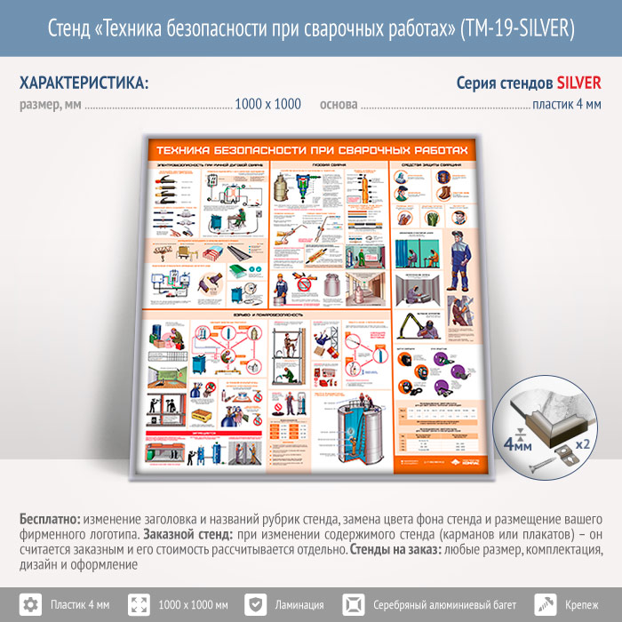 Стенд «Техника безопасности при сварочных работах» (TM-19-SILVER) в Старом Осколе купить
