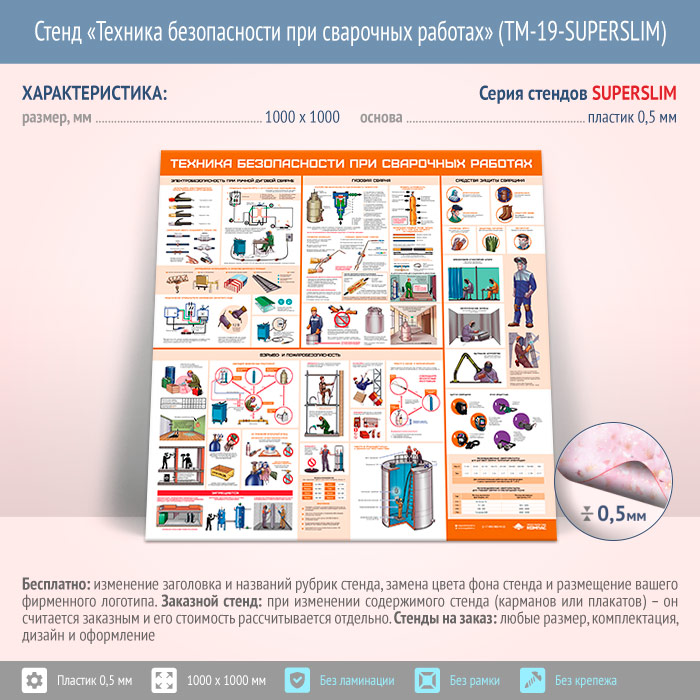 Стенд «Техника безопасности при сварочных работах» (TM-19-SUPERSLIM) в Старом Осколе купить