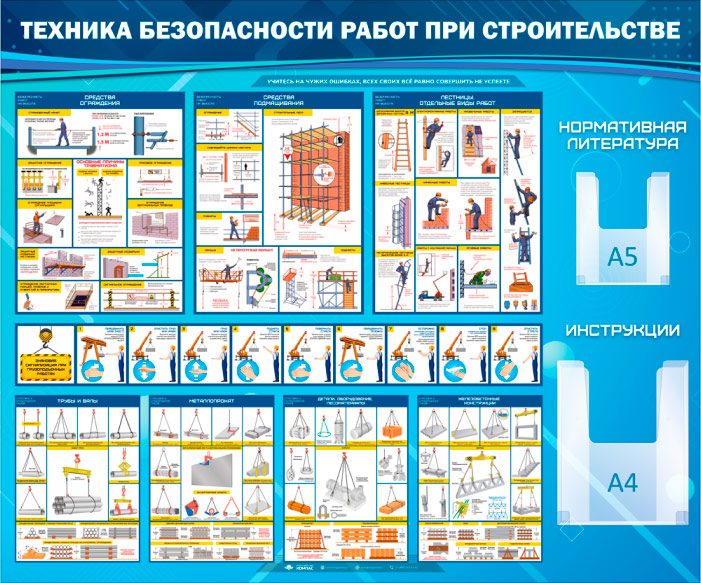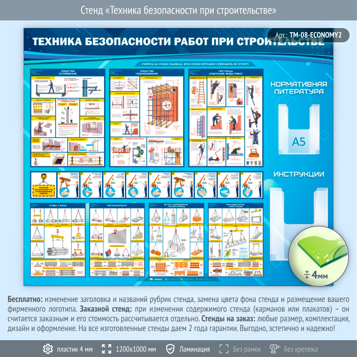 Стенд «Техника безопасности при строительстве» с 2 объемными карманами (TM-08-ECONOMY2) в Старом Осколе купить