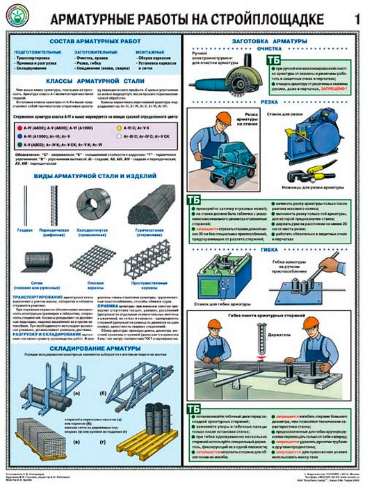 Плакаты «Арматурные работы на стройплощадке» (С-69, ламинированная бумага, А2, 3 листа) в Старом Осколе купить