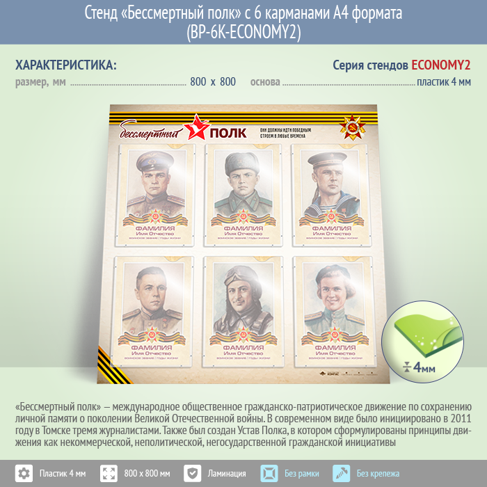 Стенд «Бессмертный полк» с 6 карманами А4 формата (BP-6K-ECONOMY2) в Старом Осколе купить