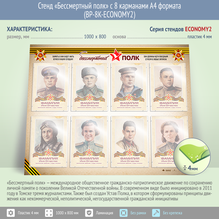Стенд «Бессмертный полк» с 8 карманами А4 формата (BP-8K-ECONOMY2) в Старом Осколе купить