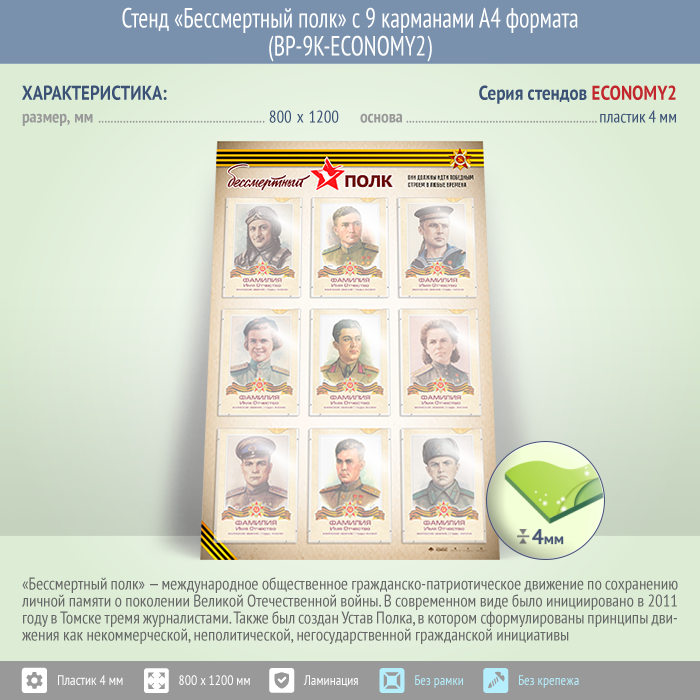 Стенд «Бессмертный полк» с 9 карманами А4 формата (BP-9K-ECONOMY2) в Старом Осколе купить