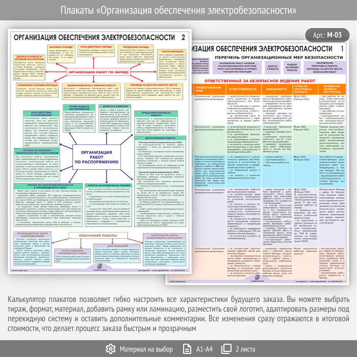 Плакаты «Организация обеспечения электробезопасности» (М-03, 2 листа) в Старом Осколе купить