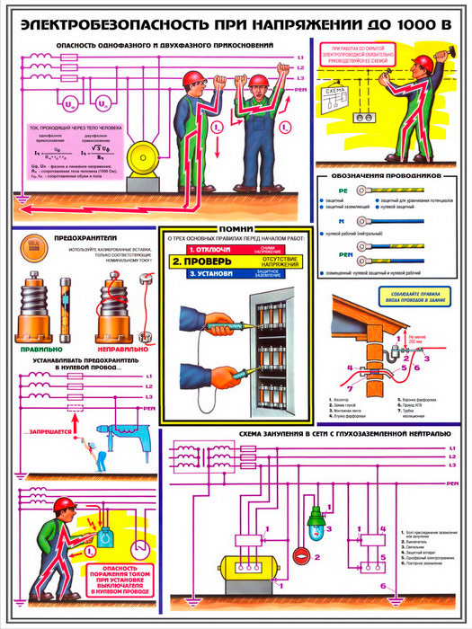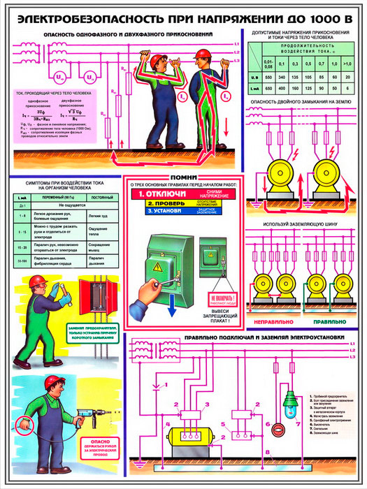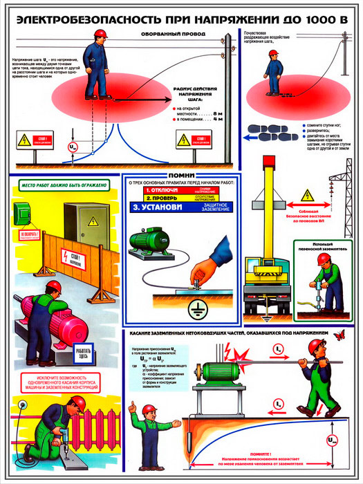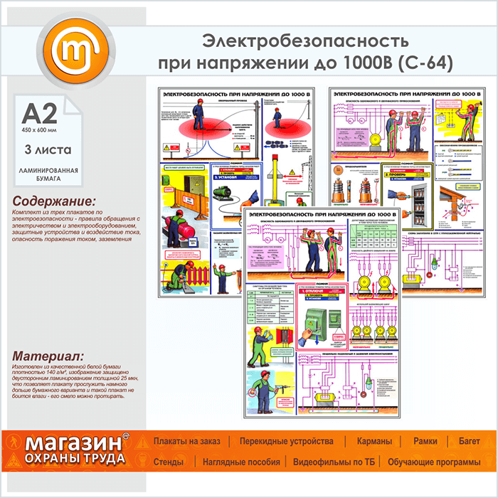 Плакаты «Электробезопасность при напряжении до 1000В» (С-64, ламинированная бумага, А2, 3 листа) в Старом Осколе купить