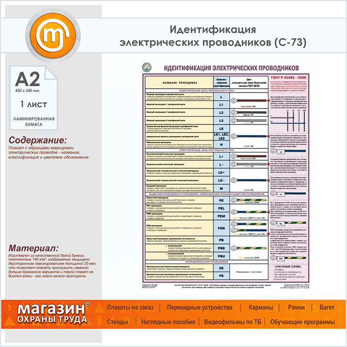 Плакат «Идентификация электрических проводников» (С-73, ламинированная бумага, А2, 1 лист) в Старом Осколе купить