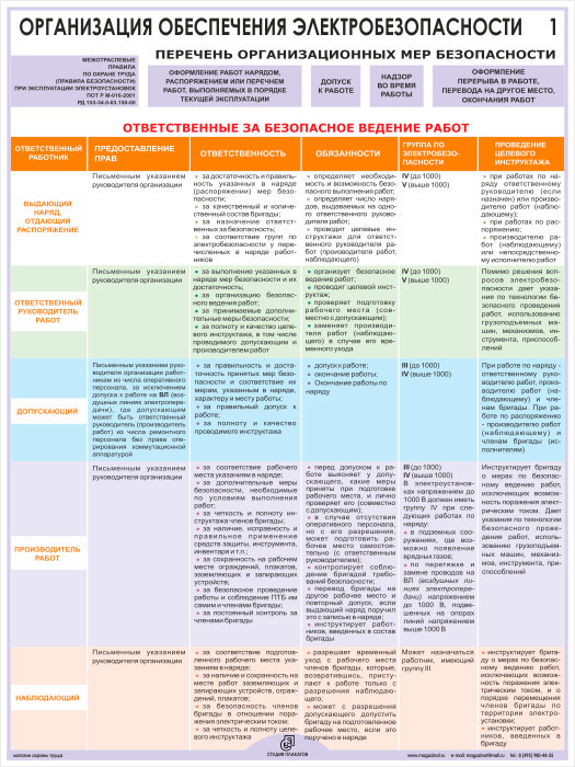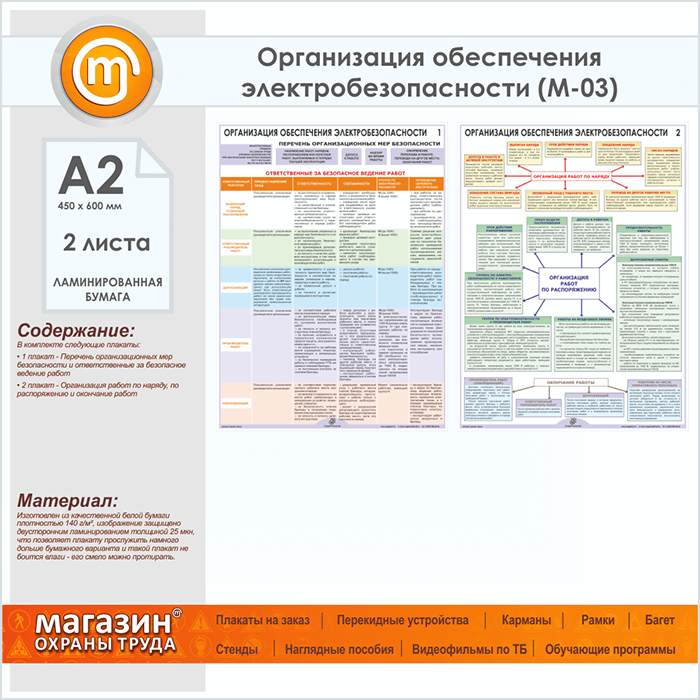 Плакаты «Организация обеспечения электробезопасности» (М-03, ламинированная бумага, А2, 2 листа) в Старом Осколе купить