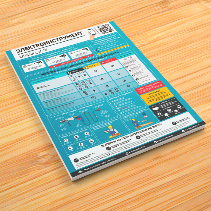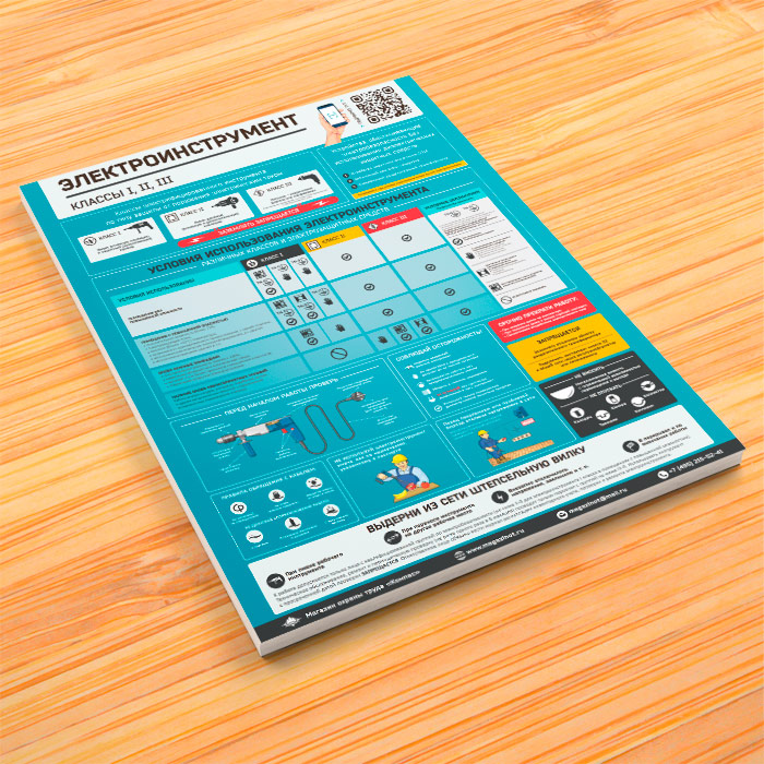 Плакат «Электроинструмент - электробезопасность» (М-66, ламинированная бумага, А2, 1 лист) в Старом Осколе купить