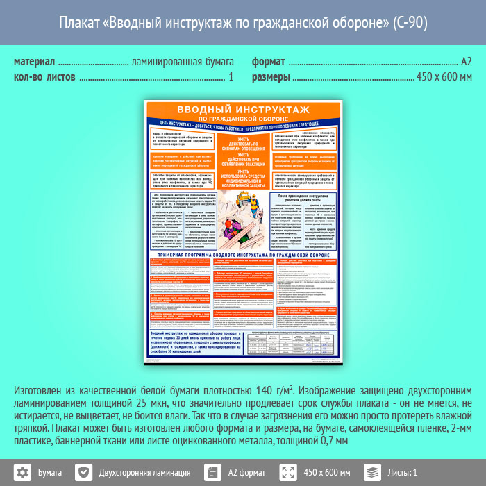 Плакат «Вводный инструктаж по гражданской обороне» (С-90, ламинированная бумага, А2, 1 лист) в Старом Осколе купить