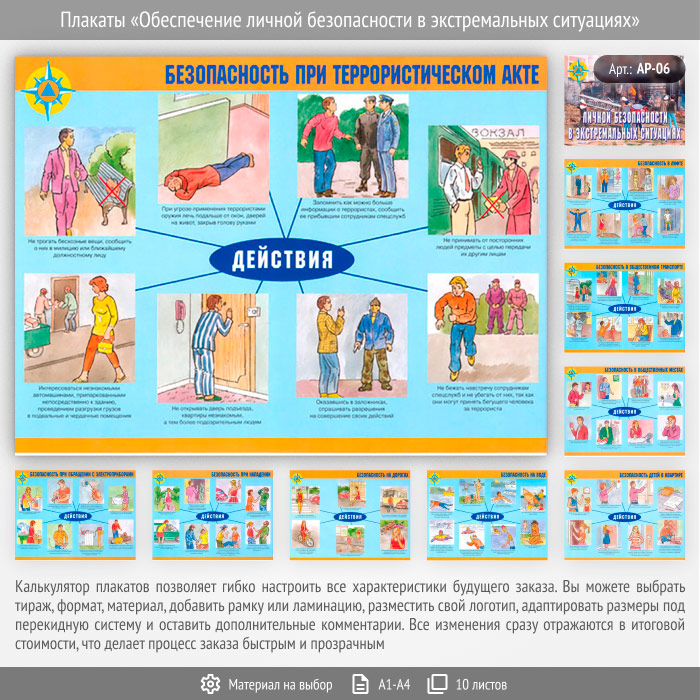 Плакаты «Обеспечение личной безопасности в экстремальных ситуациях» (АР-06, 10 листов) в Старом Осколе купить