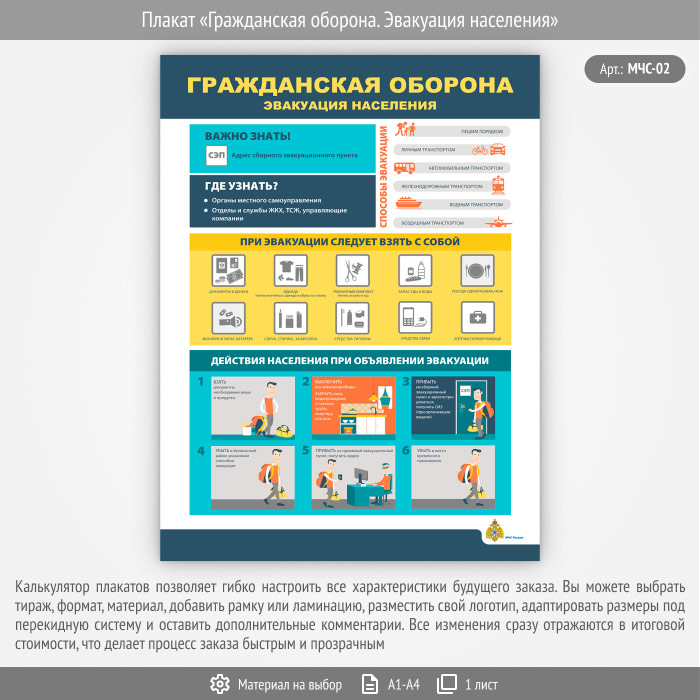 Плакат «Гражданская оборона. Эвакуация населения» (МЧС-02, 1 лист) в Старом Осколе купить