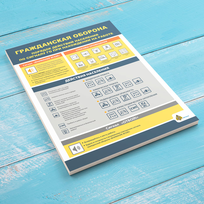 Плакат «Гражданская оборона. Порядок действия населения по сигналу ГО при нахождении на работе» (МЧС-09, 1 лист) в Старом Осколе купить