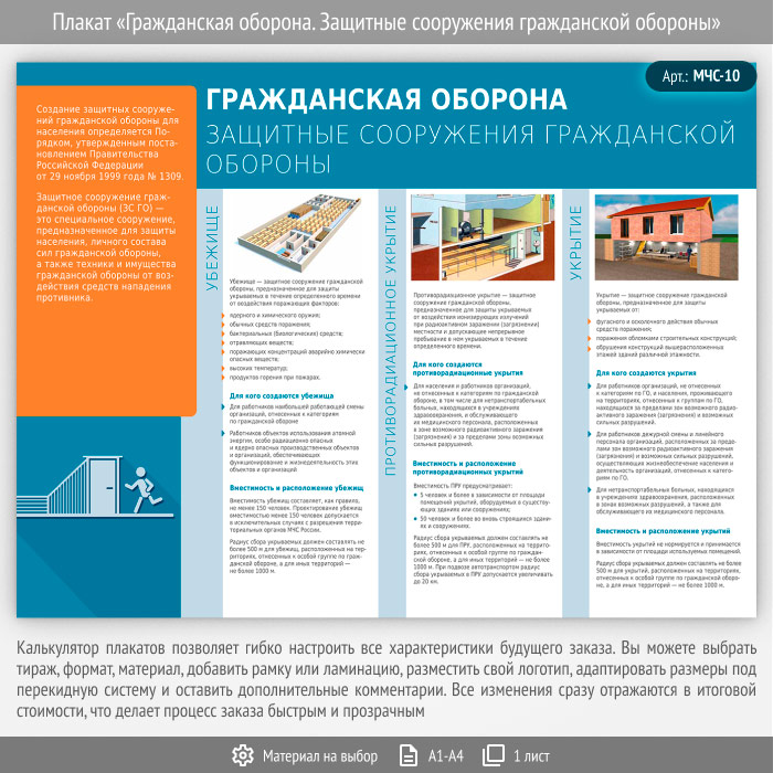 Плакат «Гражданская оборона. Защитные сооружения гражданской обороны» (МЧС-10, 1 лист) в Старом Осколе купить