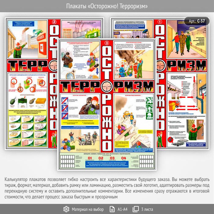 Плакаты «Осторожно! Терроризм» (С-37, 3 листа) в Старом Осколе купить