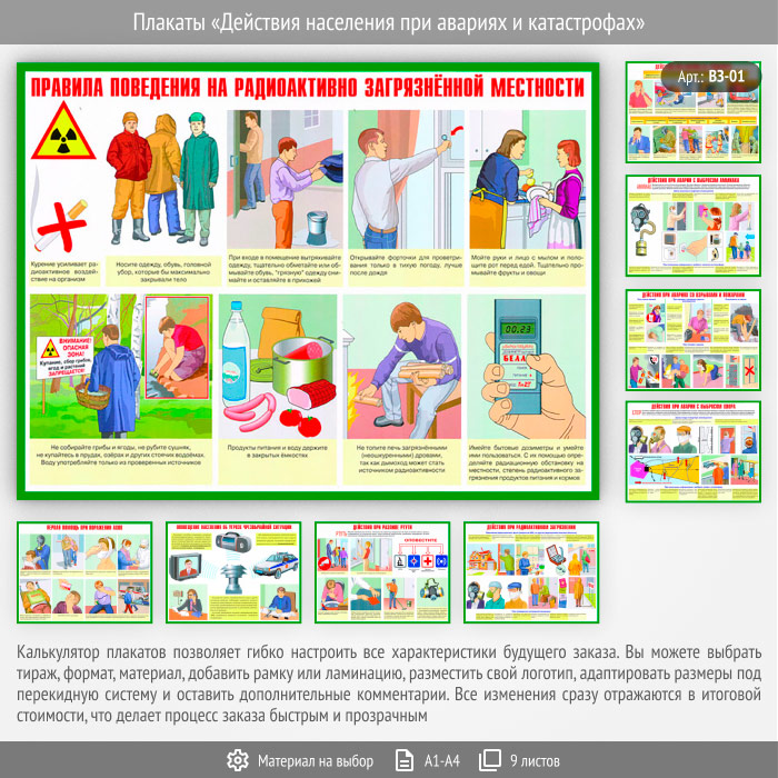 Плакаты «Действия населения при авариях и катастрофах» (ВЗ-01, 9 листов) в Старом Осколе купить