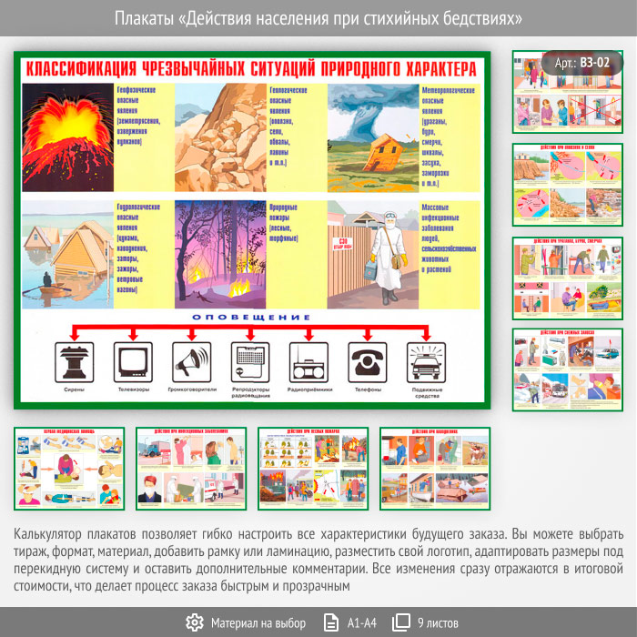 Плакаты «Действия населения при стихийных бедствиях» (ВЗ-02, 9 листов) в Старом Осколе купить