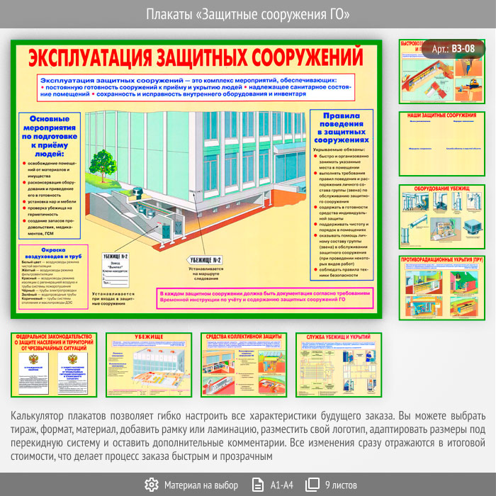 Плакаты «Защитные сооружения ГО» (ВЗ-08, 9 листов) в Старом Осколе купить