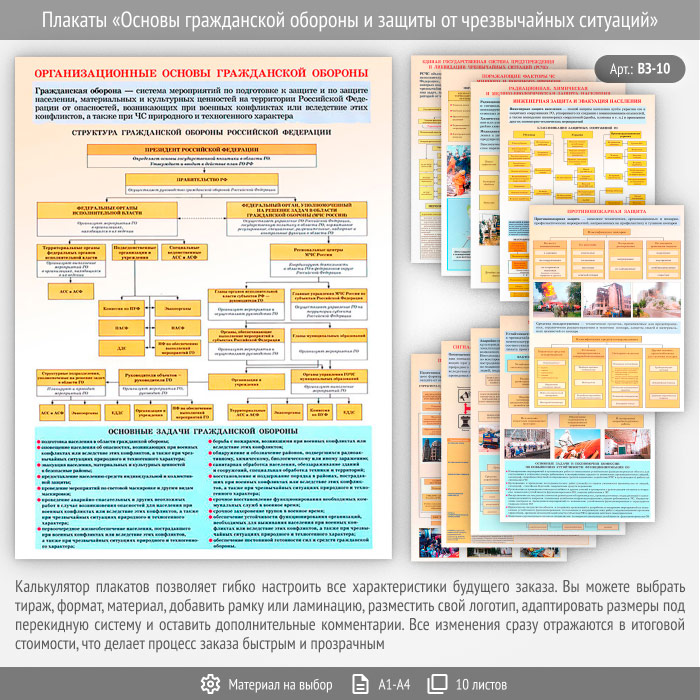 Плакаты «Основы гражданской обороны и защиты от чрезвычайных ситуаций» (ВЗ-10, 10 листов) в Старом Осколе купить