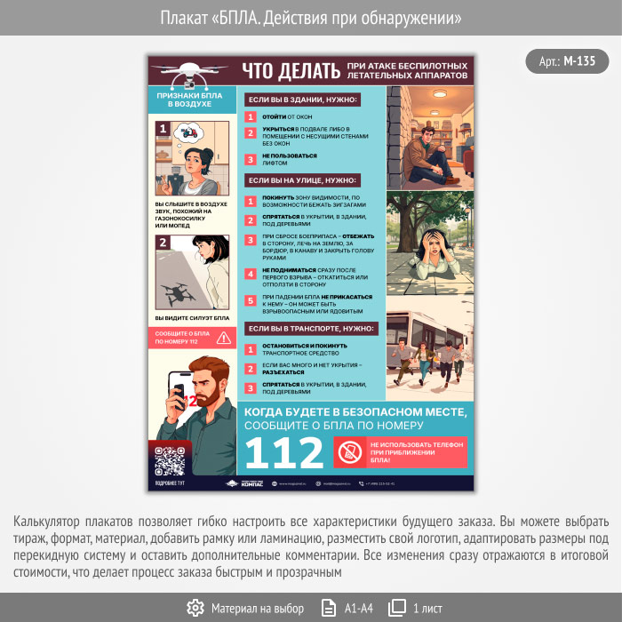Плакат «БПЛА. Действия при обнаружении» с QR (М-135, 1 лист) в Старом Осколе купить