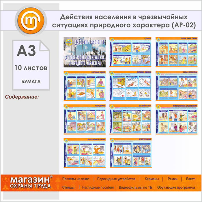 Плакаты «Действия населения в чрезвычайных ситуациях природного характера» (АР-02, бумага, А3, 10 листов) в Старом Осколе купить