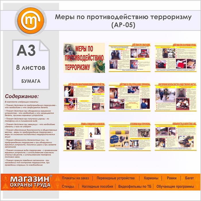 Плакаты «Меры по противодействию терроризму» (АР-05, бумага, А3, 8 листов) в Старом Осколе купить