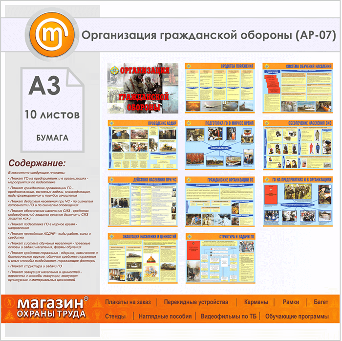 Плакаты «Организация гражданской обороны» (АР-07, бумага, А3, 10 листов) в Старом Осколе купить