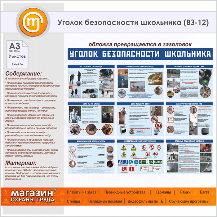 Плакаты «Уголок безопасности школьника» (ВЗ-12, бумага, А3, 10 листов) в Старом Осколе купить