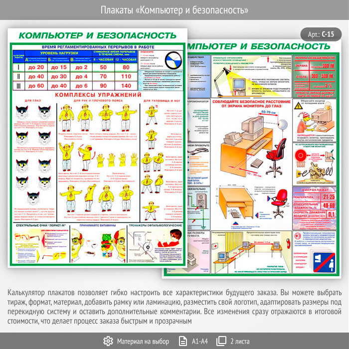 Плакаты «Компьютер и безопасность» (С-15, 2 листа) в Старом Осколе купить