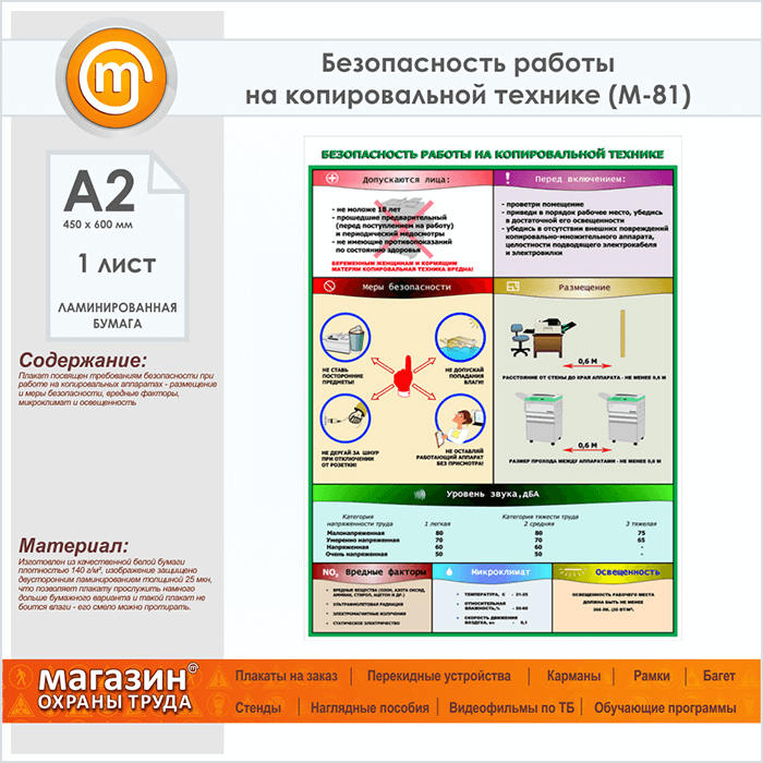 Плакат «Безопасность работы на копировальной технике» (М-81, ламинированная бумага, А2, 1 лист) в Старом Осколе купить