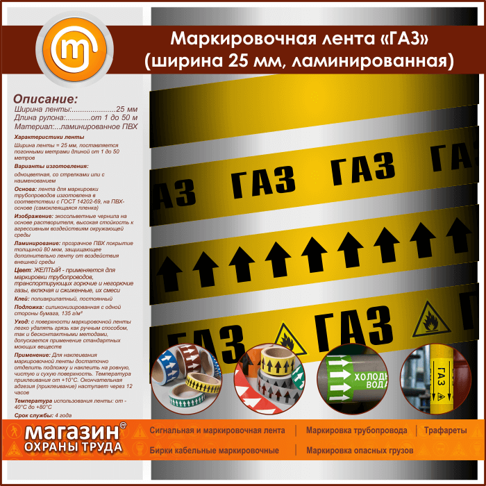 Маркировочная лента «ГАЗ» (ширина 25 мм, самоклеящаяся плёнка с ламинированием) в Старом Осколе купить