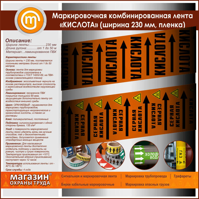 Маркировочная комбинированная лента «КИСЛОТА» (ширина 230 мм, самоклеящаяся плёнка с ламинированием) в Старом Осколе купить