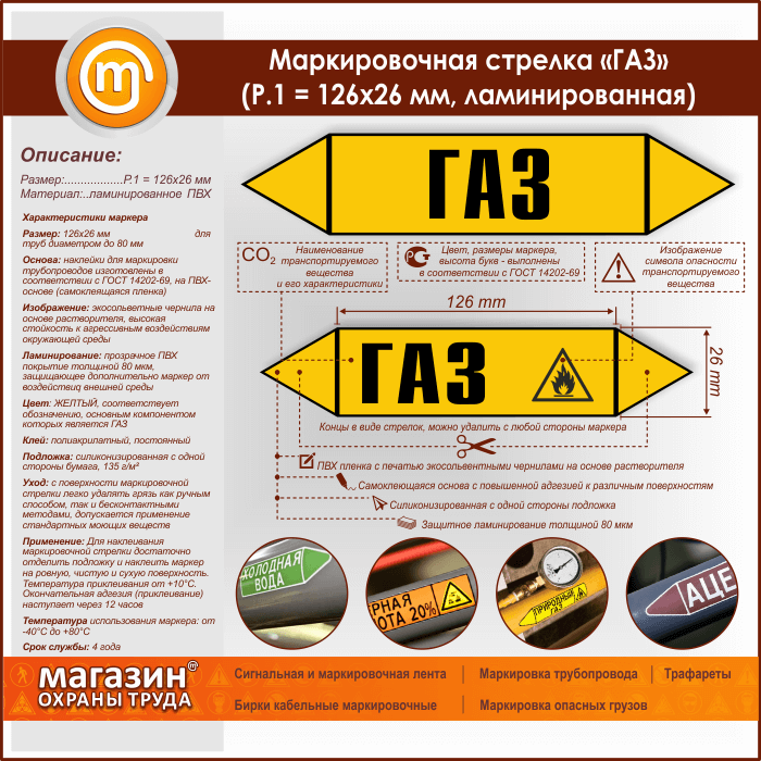 Маркировочная стрелка «ГАЗ» (Р.1 = 126х26 мм, самоклеящаяся плёнка с ламинированием) в Старом Осколе купить