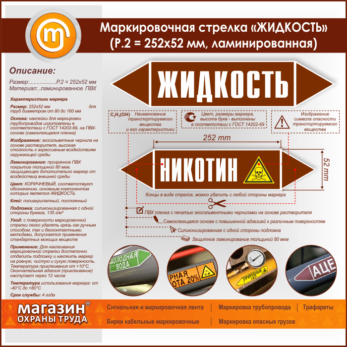 Маркировочная стрелка «ЖИДКОСТЬ» (P.2 = 252х52 мм, самоклеящаяся плёнка с ламинированием) в Старом Осколе купить