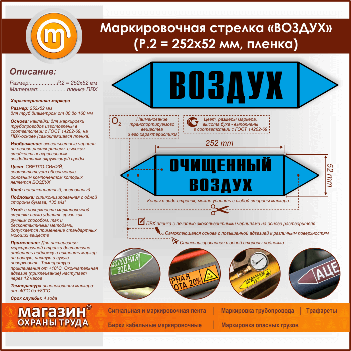 Маркировочная стрелка «ВОЗДУХ» (P.2 = 252х52 мм, самоклеящаяся плёнка) в Старом Осколе купить