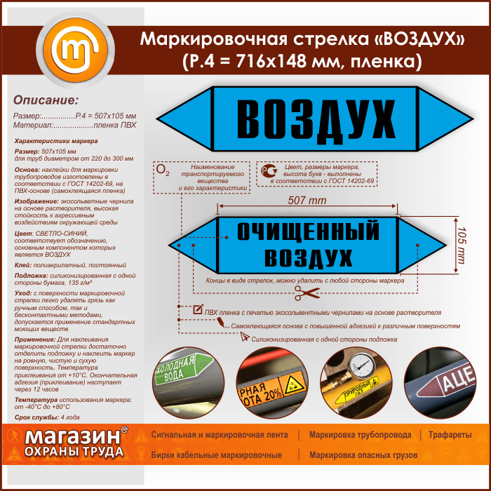 Маркировочная стрелка «ВОЗДУХ» (P.4 = 507х105 мм, самоклеящаяся плёнка) в Старом Осколе купить