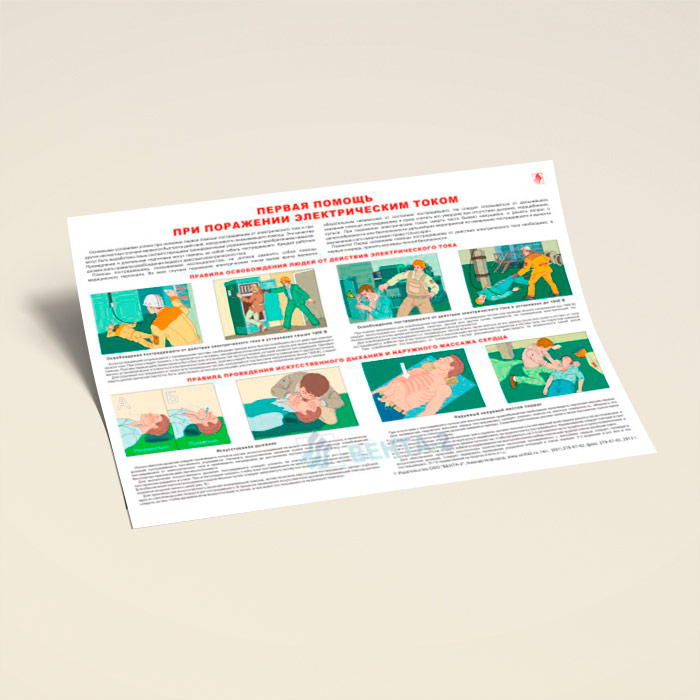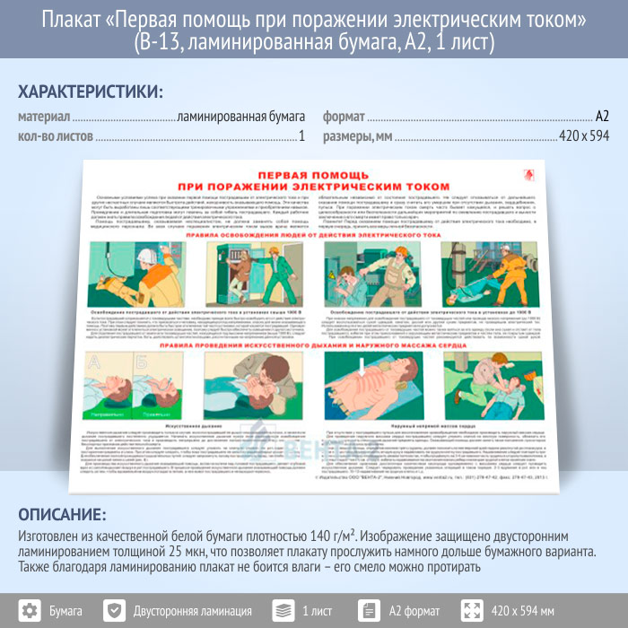 Плакат «Первая помощь при поражении электрическим током» (В-13, ламинированная бумага, А2, 1 лист) в Старом Осколе купить
