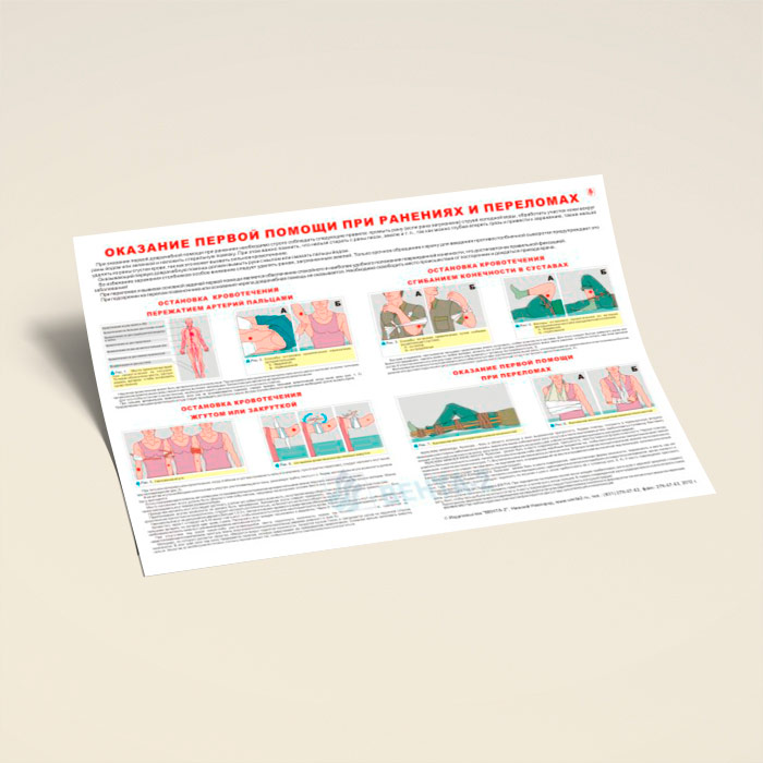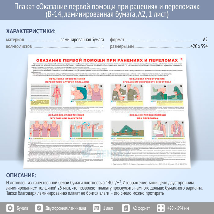 Плакат «Оказание первой помощи при ранениях и переломах» (В-14, ламинированная бумага, А2, 1 лист) в Старом Осколе купить
