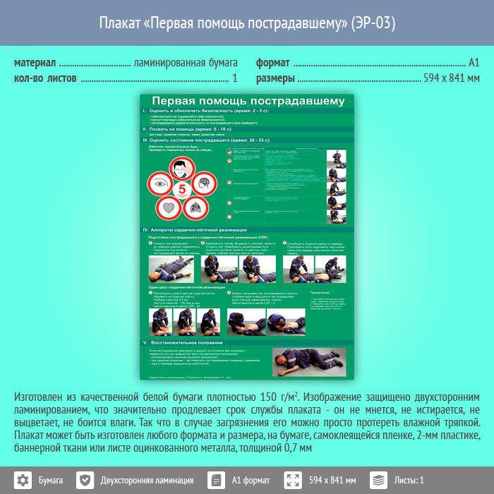 Плакат «Первая помощь пострадавшему» (ЭР-03, ламинированная бумага, А1, 1 лист) в Старом Осколе купить