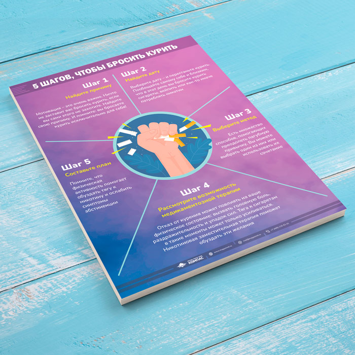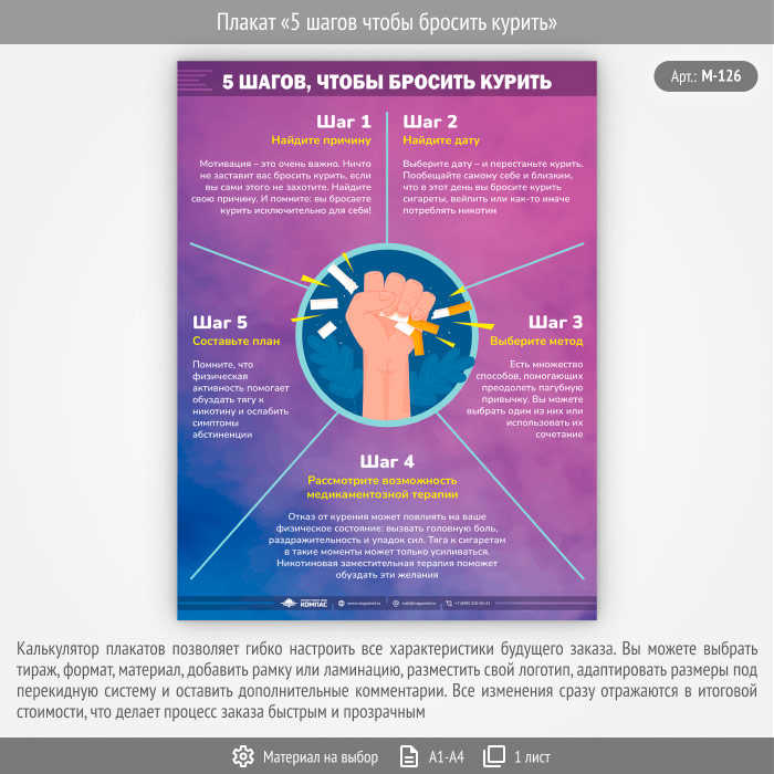 Плакат «5 шагов чтобы бросить курить» (М-126, 1 лист) в Старом Осколе купить