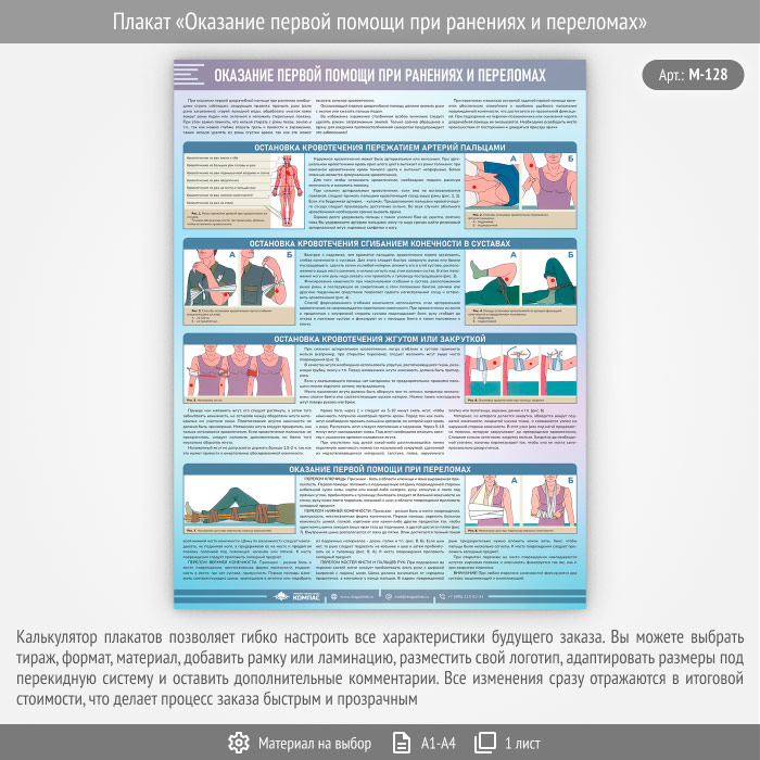 Плакат «Оказание первой помощи при ранениях и переломах» (М-128, 1 лист) в Старом Осколе купить