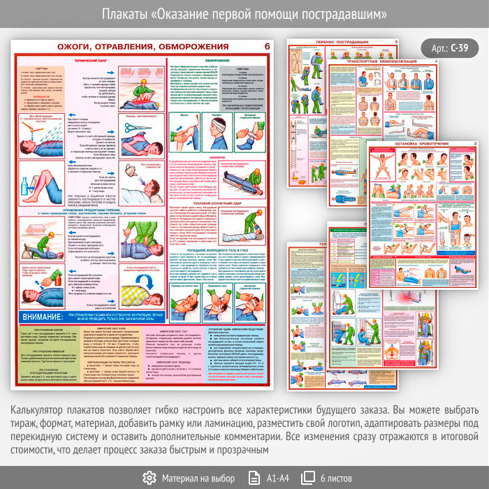 Плакат «Оказание первой помощи пострадавшим» (С-39, 6 листов) в Старом Осколе купить