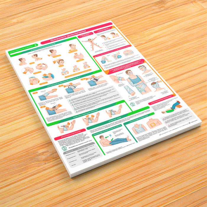 Плакаты «Первая реанимационная и первая медицинская помощь» (М-39, ламинированная бумага, А2, 6 листов) в Старом Осколе купить