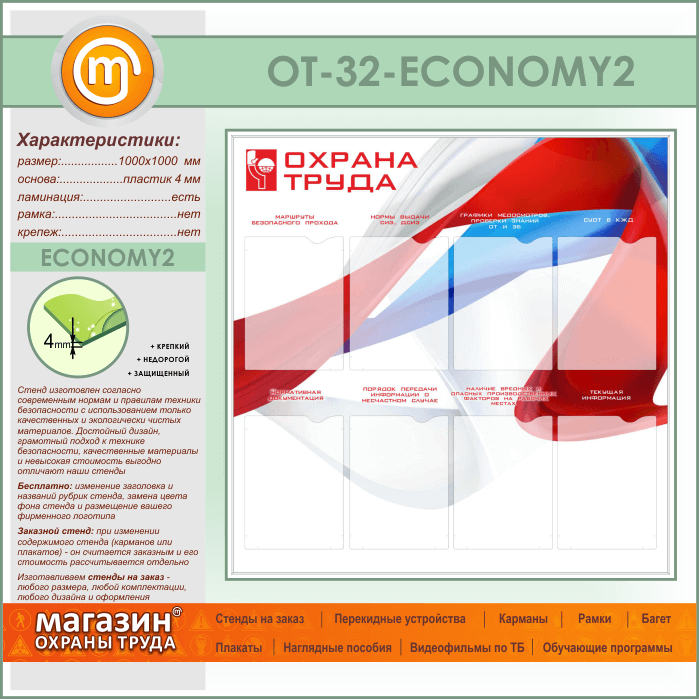 Стенд «Охрана труда» с 8 карманами (OT-32-ECONOMY2) в Старом Осколе купить