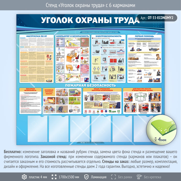 Стенд «Уголок охраны труда» с 6 карманами (OT-33-ECONOMY2) в Старом Осколе купить