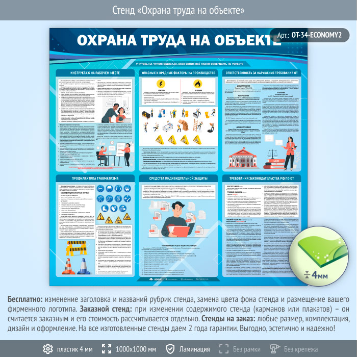 Стенд «Охрана труда на объекте» (OT-34-ECONOMY2) в Старом Осколе купить